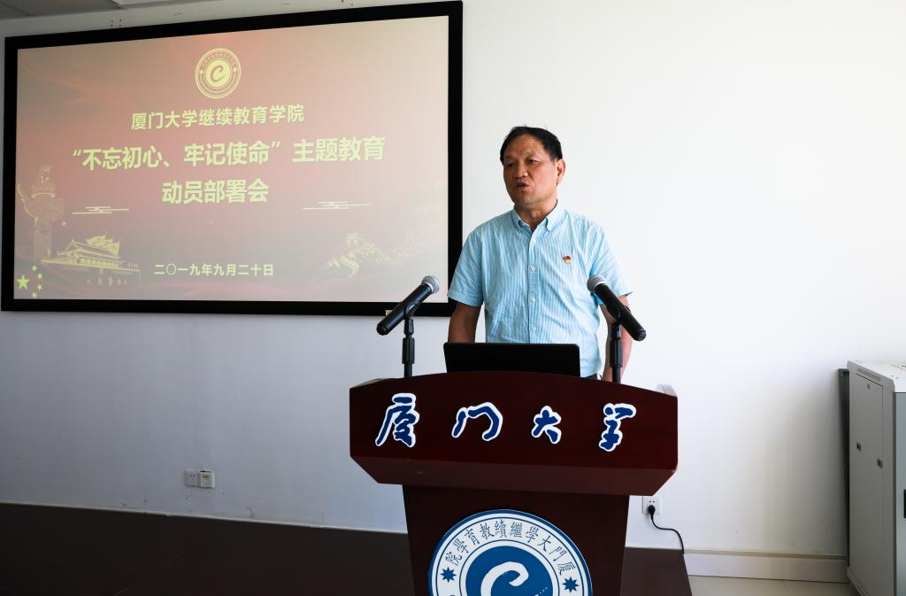 为深入贯彻落实党中央关于开展“不忘初心、牢记使命”主题教育的决策部署和教育部党组、福建省委和校党委的有关要求,9月20日上午,厦门大学继续教育学院“不忘初心、牢记使命”主题教育动员部署会在南存钿楼A202会议室召开。学校主题教育第七巡回指导组组长洪永强、联络员赖珊珊到会指导,学院领导班子成员、所辖各支部书记及委员,学院“不忘初心、牢记使命”主题教育工作领导小组办公室成员以及教职工党员代表出席了会议。会议由学院党总支副书记杨鸿飞主持。