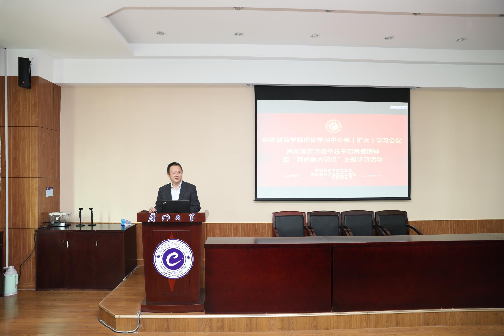 4月6日上午,继续教育学院组织全体教职工在学院306会议室集中收看大会直播。9日下午,学院理论学习中心组召开扩大学习会议,认真学习了习近平总书记致厦门大学建校100周年贺信内容,并开展“我的厦大记忆”主题学习活动,在分享交流“继教人”的厦大故事,共绘厦大继续教育记忆拼图的过程中推动学习贯彻习近平总书记贺信精神入脑入心。会议由党总支书记邱旺土主持。