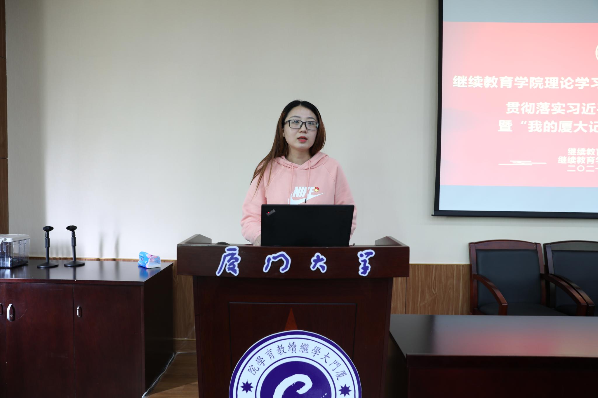 学院财务部蔡丽霞老师作为“土生土长”的厦大人,围绕“生活在厦大、学习在厦大、工作在厦大”三个方面讲述了自己与厦大的情缘,在学习了习近平总书记贺信精神后,更加深刻地认识到,作为继续教育人,应当将陈嘉庚先生的办学理念发扬光大,为祖国培养更多有用的人才,为厦大贡献自己更大的力量。