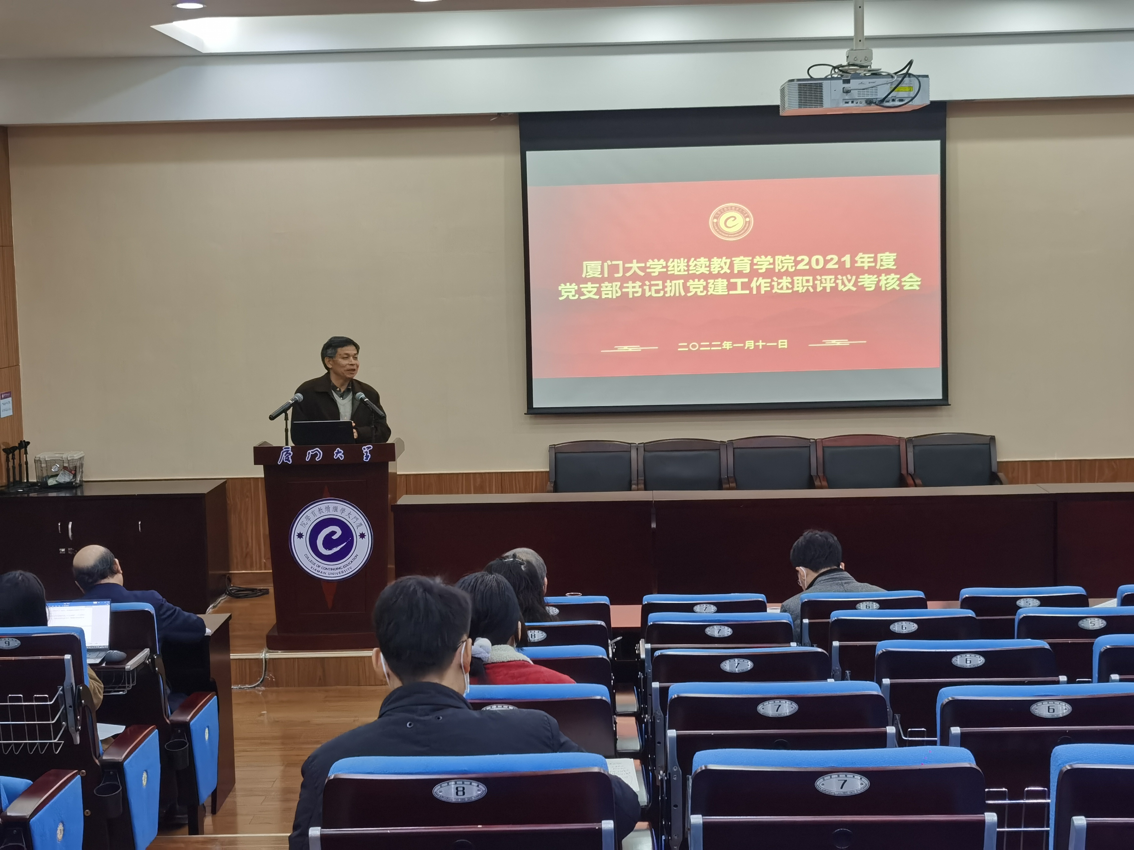 为进一步夯实学院党建工作基础,推动全面从严治党向一线延伸,2022年1月11日下午,我院在厦大海韵学生公寓教学楼404报告厅召开2021年度党支部书记抓党建工作述职评议考核会议。校党建工作联络员郑建华列席指导。会议由学院党总支书记邱旺土主持。