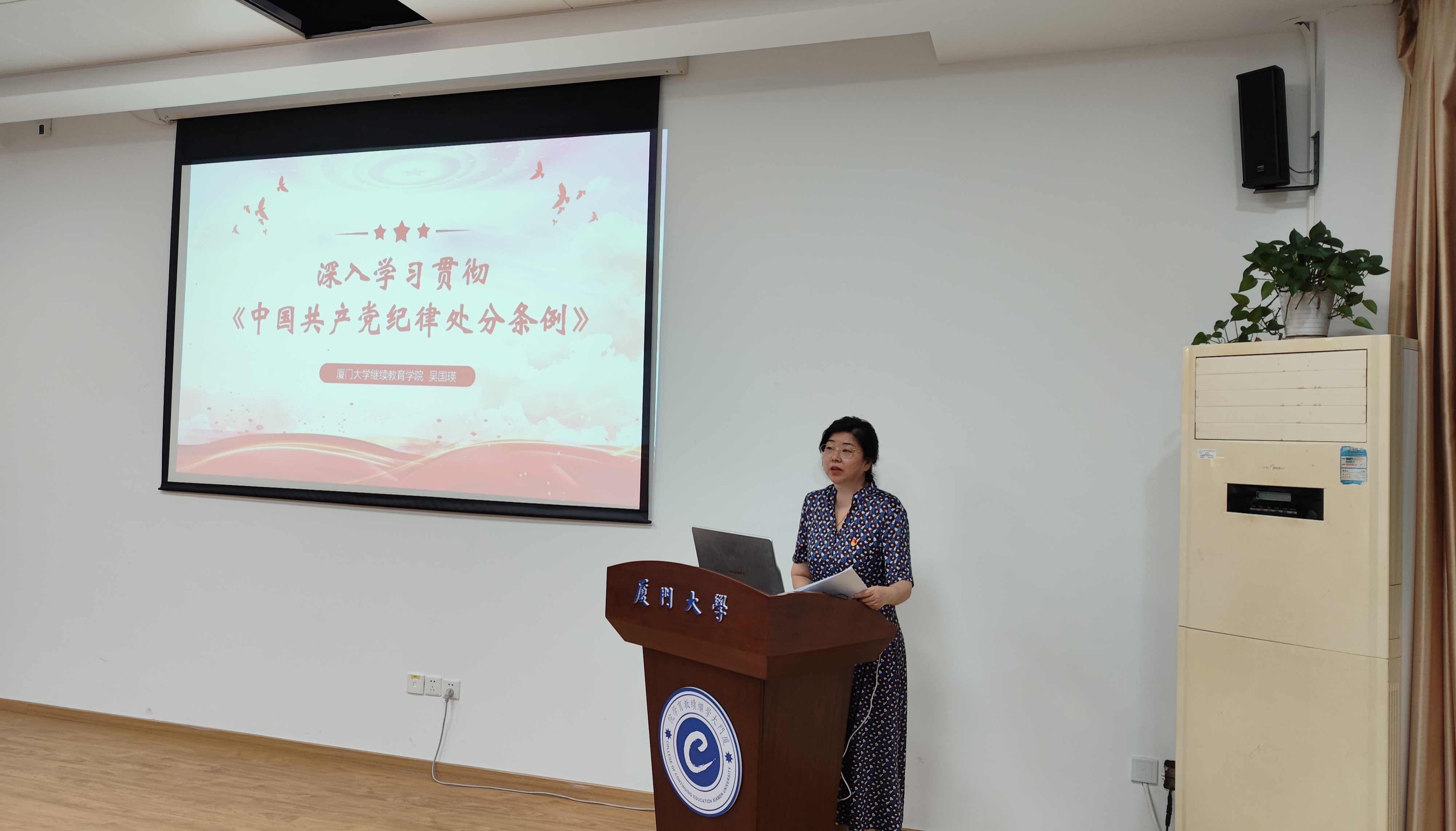 继续教育学院全体教职工党员在厦大学生公寓二期306会议室集中参加了此次学习活动。