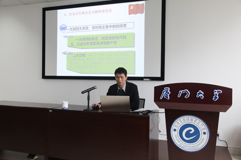 2018年12月28日上午,我支部邀请学院党总支书记蔡郑伟、副院长黄明伟、支部书记李金水在南存钿楼A202会议室为支部党员讲党课。