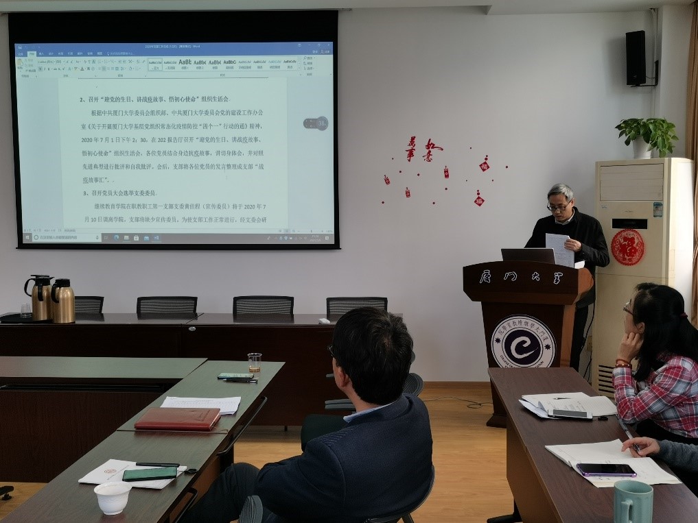 李金水首先传达了校党委关于开好组织生活会和民主评议党员的有关精神和要求,简要介绍了会议议程。接着,李金水同志代表在职教职工第一党支部委员会向全体党员汇报了2020年度支部工作总结及2021年度工作计划,剖析了支部工作存在的问题,提出下一步改进举措。