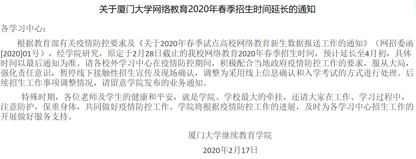 学院积极响应学校“停课不停学”的号召,及时推出具有厦门大学继续教育学院特点的疫情防控“双面向”教育工作法。