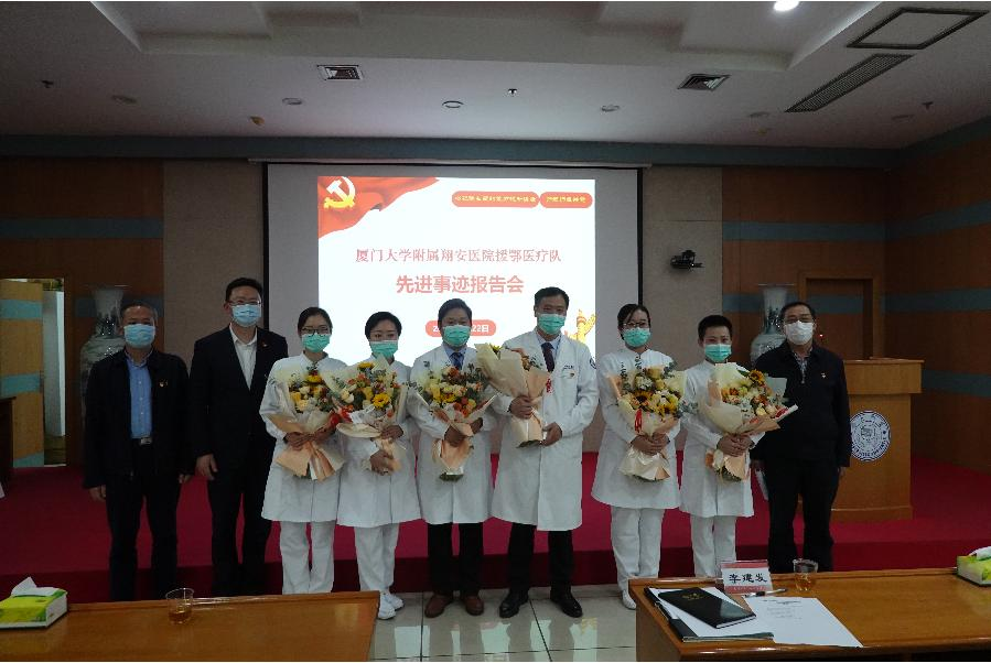 4月22日下午,学校举行厦门大学附属翔安医院援鄂医疗队先进事迹报告会,邀请附属翔安医院6名医务人员和家属讲述在战“疫”一线不忘初心、治病救人的先进事迹。校党委常务副书记李建发主持报告会。校党委常委徐进功、孙理,校长助理张建霖出席。