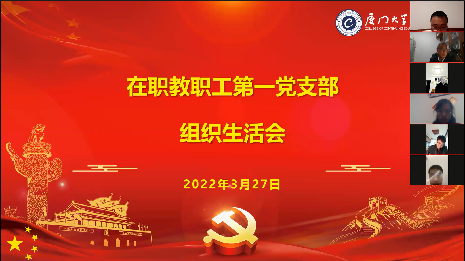 为深入学习贯彻党的十九届六中全会精神,不断推进党的建设新的伟大工程,提升基层党组织政治功能和组织力,根据校党委工作部署,我院在职教职工第一党支部在学院党总支指导下,于3月27日晚上以线上会议形式召开组织生活会,并开展民主评议党员。支部全体党员参加会议,联系支部院领导学院党总支书记邱旺土、副院长郑庆喜列席指导。会议由党支部书记李金水主持。