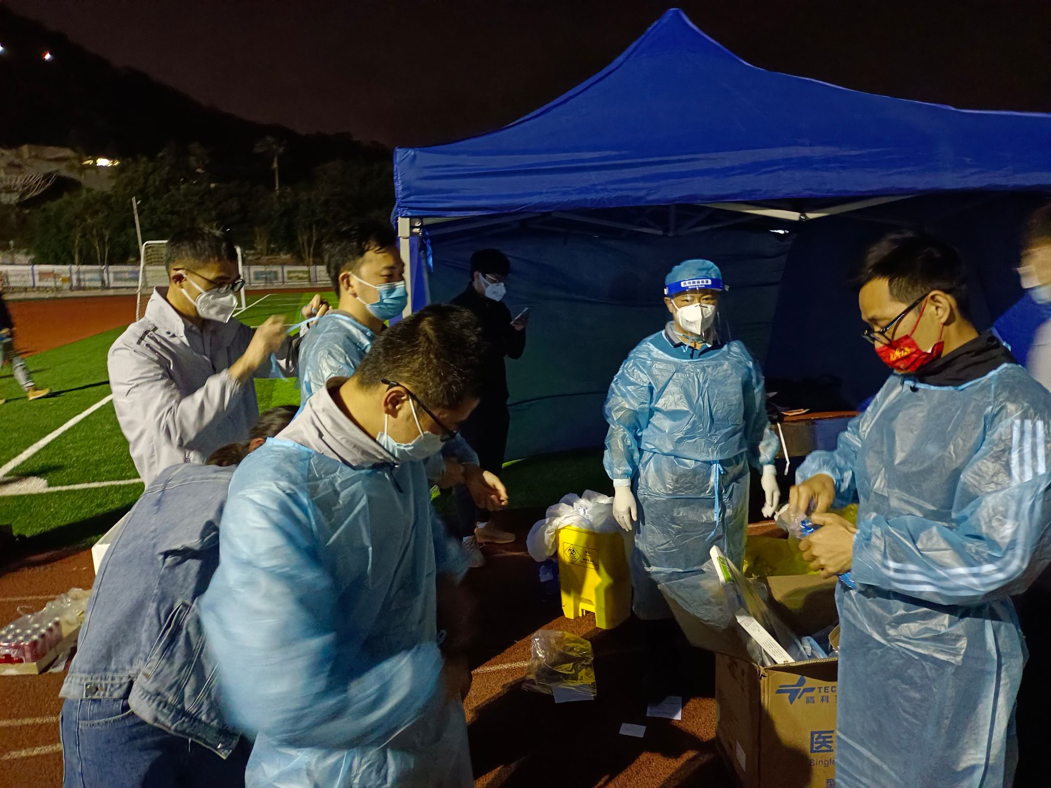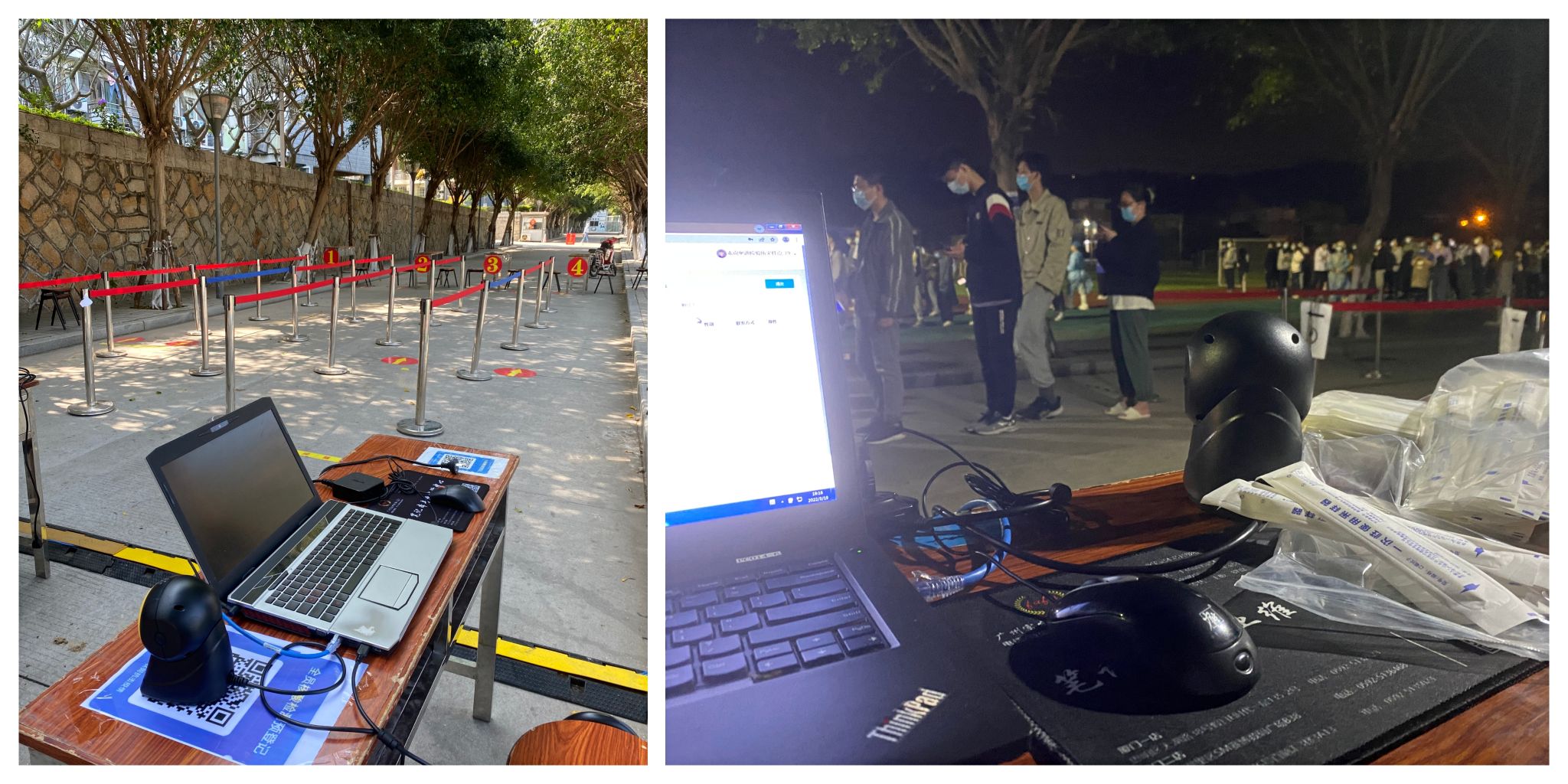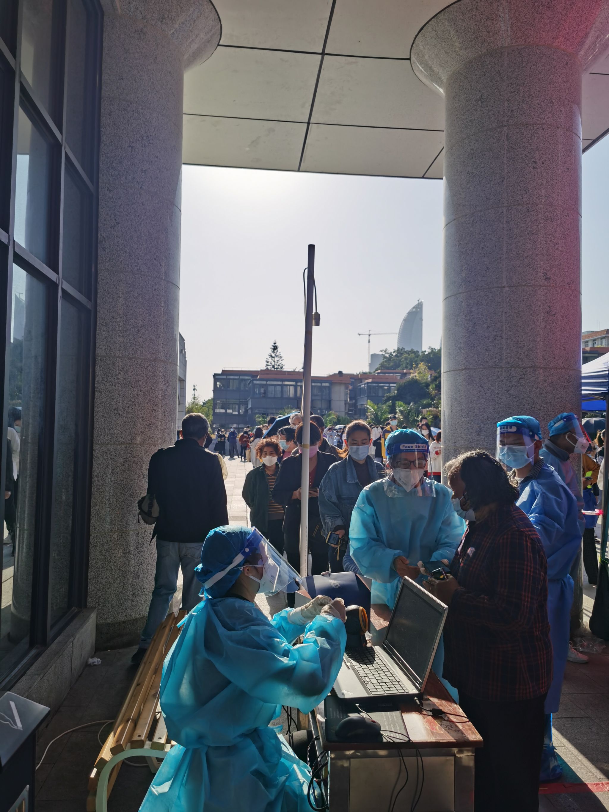身上衣服湿了一遍又一遍,不要紧,手上被汗浸出了盐渍,不要紧,能够多测一个人、多帮助一个人,就是志愿者们共同的期望,师生们的一声理解、一句感谢,就是支撑志愿者们的坚定力量。