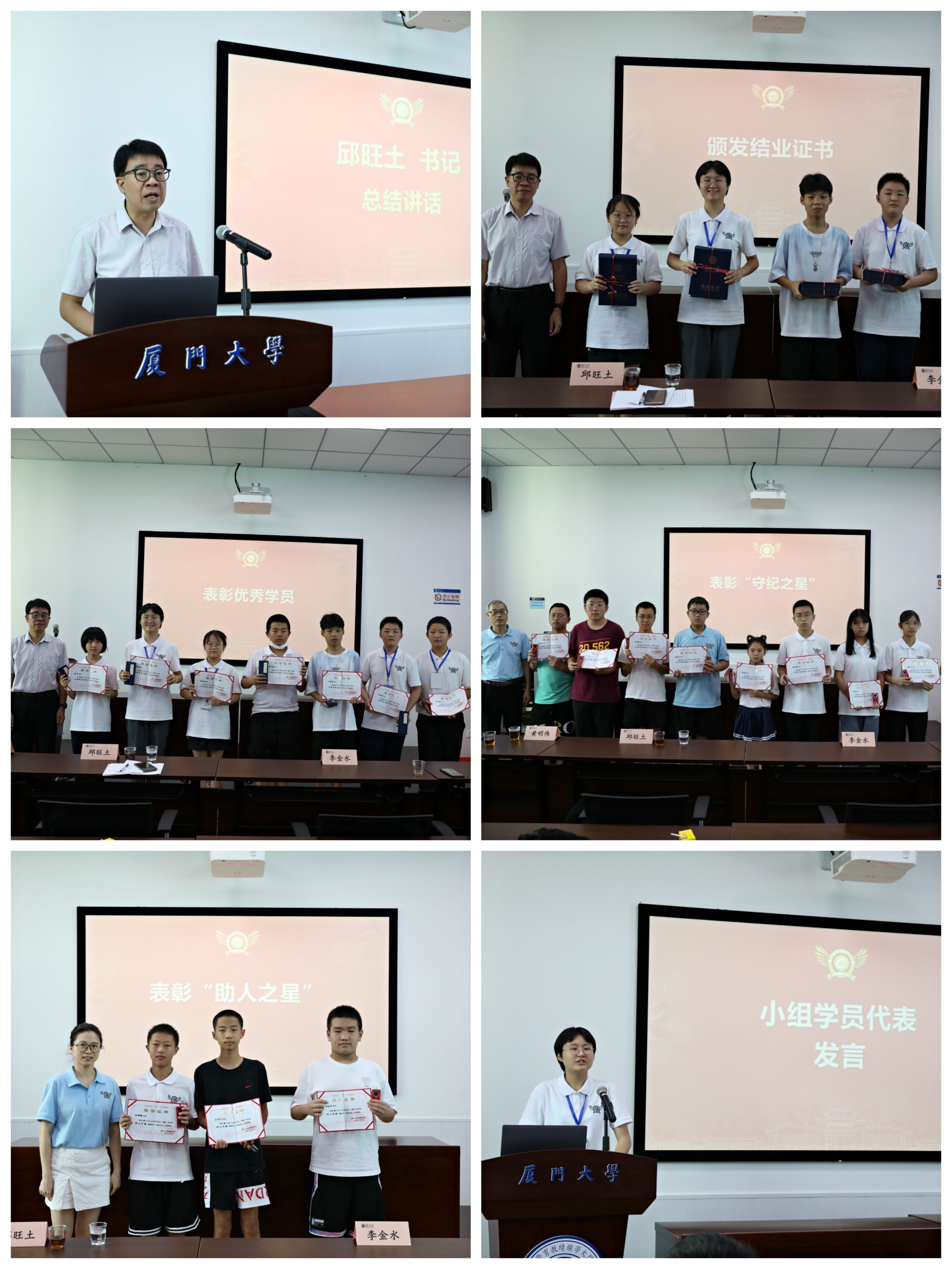 8月7日上午,结业仪式在海韵学生公寓教学楼402室隆重举行,学院党总支书记邱旺土老师、党总支副书记黄明伟老师出席结业仪式。