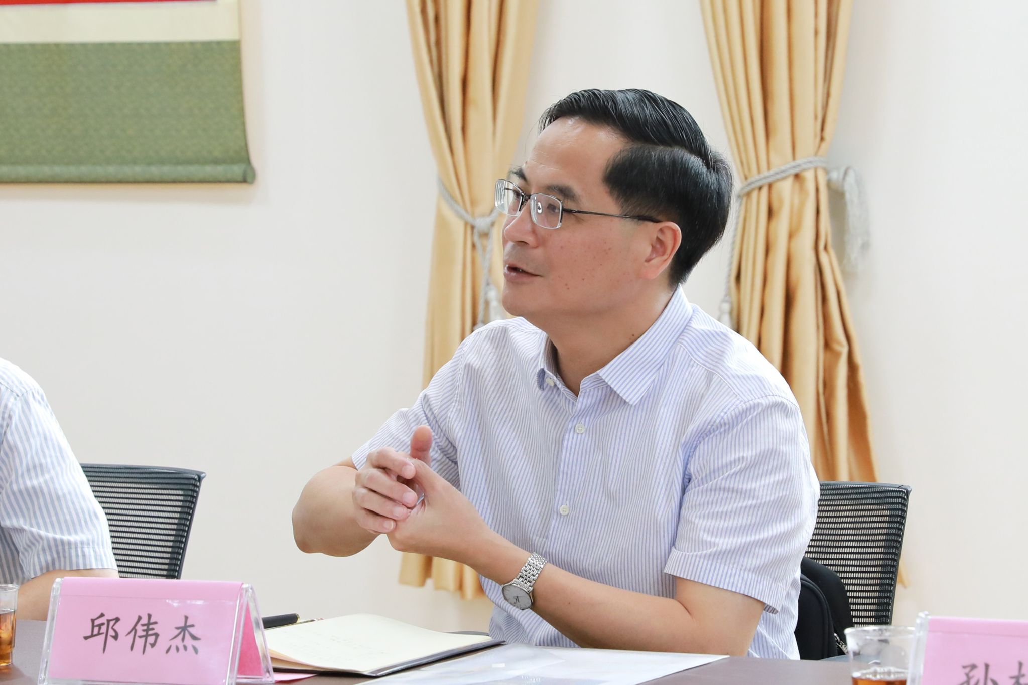 10月5日上午,厦门大学校长张宗益,副校长邱伟杰一行莅临继续教育学院调研,与学院党政领导班子成员和各业务部门负责人座谈交流。会议由学院党总支书记邱旺土主持。