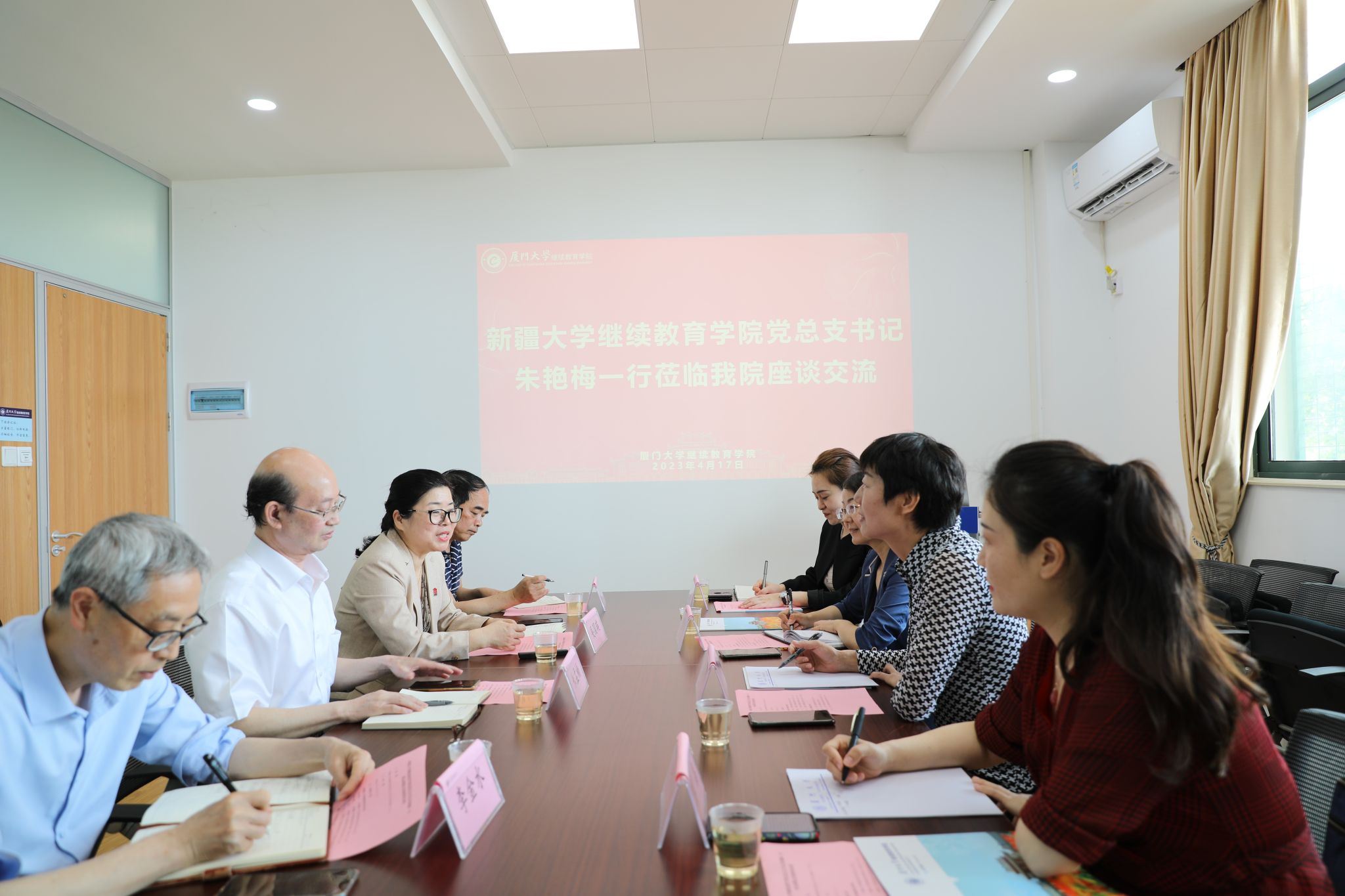 朱艳梅代表新疆大学继续教育学院对我院的精心安排表示感谢,并简要介绍了新疆大学继续教育学院的人员架构、业务模块、发展现状等。