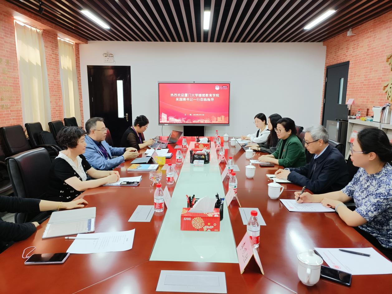 5月15日上午,吴国瑛一行赴同济大学继续教育学院交流调研。同济大学继续教育学院金福安院长介绍了同济大学继续教育学院的发展历程、办学特色以及办学现状,学院学历继续教育的专业建设、师资队伍建设、教材建设、课程思政等和非学历教育同济品牌培训课程体系建设和推广等具体工作情况。双方结合岗位工作中的做法和问题等进行了对口交流,就办学环境改善、非学历教育激励机制、线上培训项目、平台建设等方面,希望能资源共享、优势互补,共同拓展双方在继续教育事业上开展合作的空间。