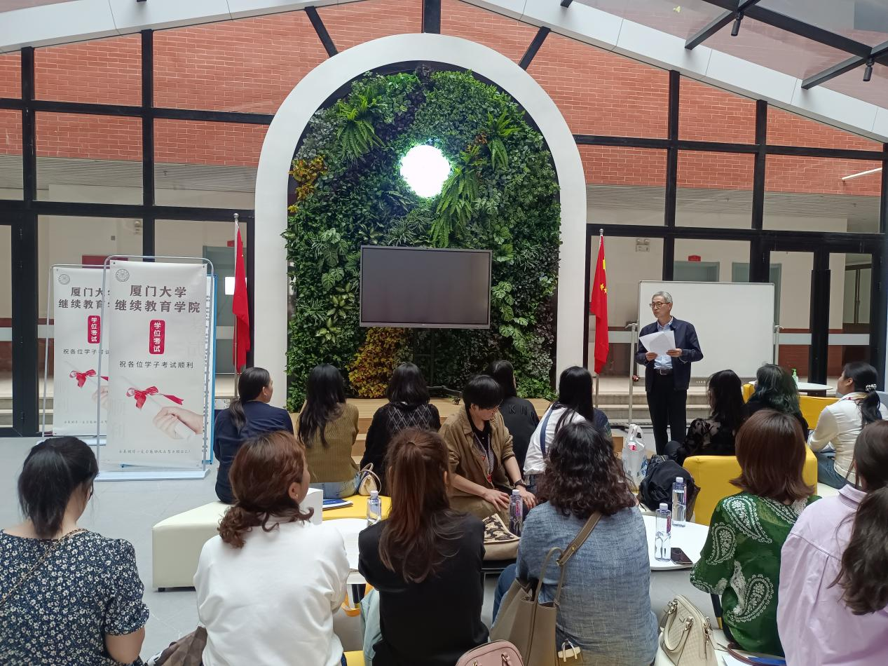 本次学位课程考试上海考点共设立16间考场,共有482人参加考试。5月14日上午,吴国瑛书记一行赴考试现场参与巡考工作,检查考场秩序和考务工作人员履职情况,并听取我校远程教育上海亿时代学习中心李观照校长关于上海中心网络学历教育学生管理服务情况报告。吴国瑛充分肯定中心近年来在用心用情配合学院做好招生、学习支持服务等工作中作出的贡献,希望中心在学校网络学历教育收尾工作期间,始终牢记育人初心,继续扎实工作、积极作为,为妥善做好网络学历教育收尾工作贡献力量。