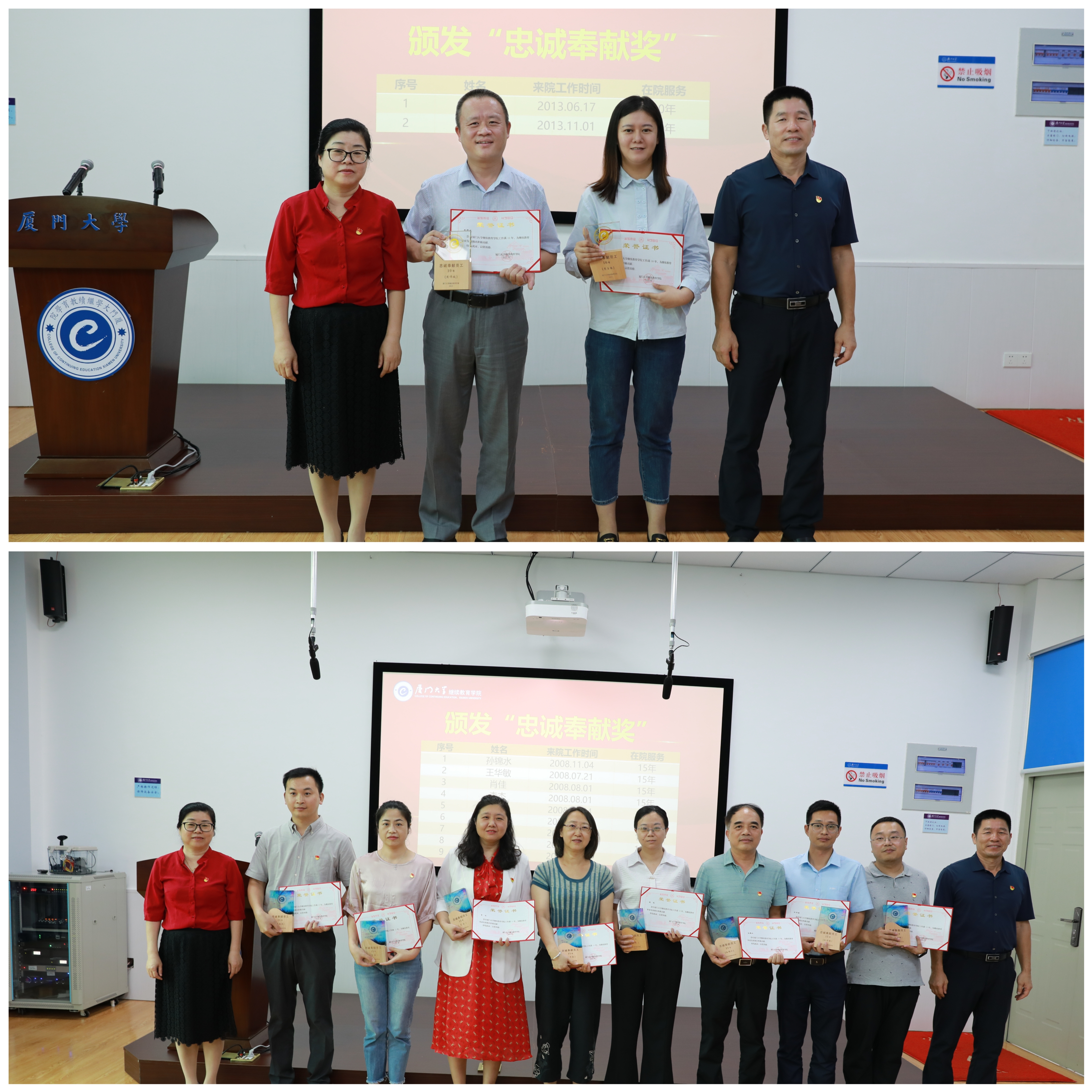 接着,为感谢长期立足岗位,默默奉献才干并符合奖项条件的老师们颁发“忠诚奉献奖”。在学院发展历程中,他们用青春汗水为学院发展贡献智慧与力量,始终与学院并肩同行、共同成长,未来还会继续努力,再创佳绩。
