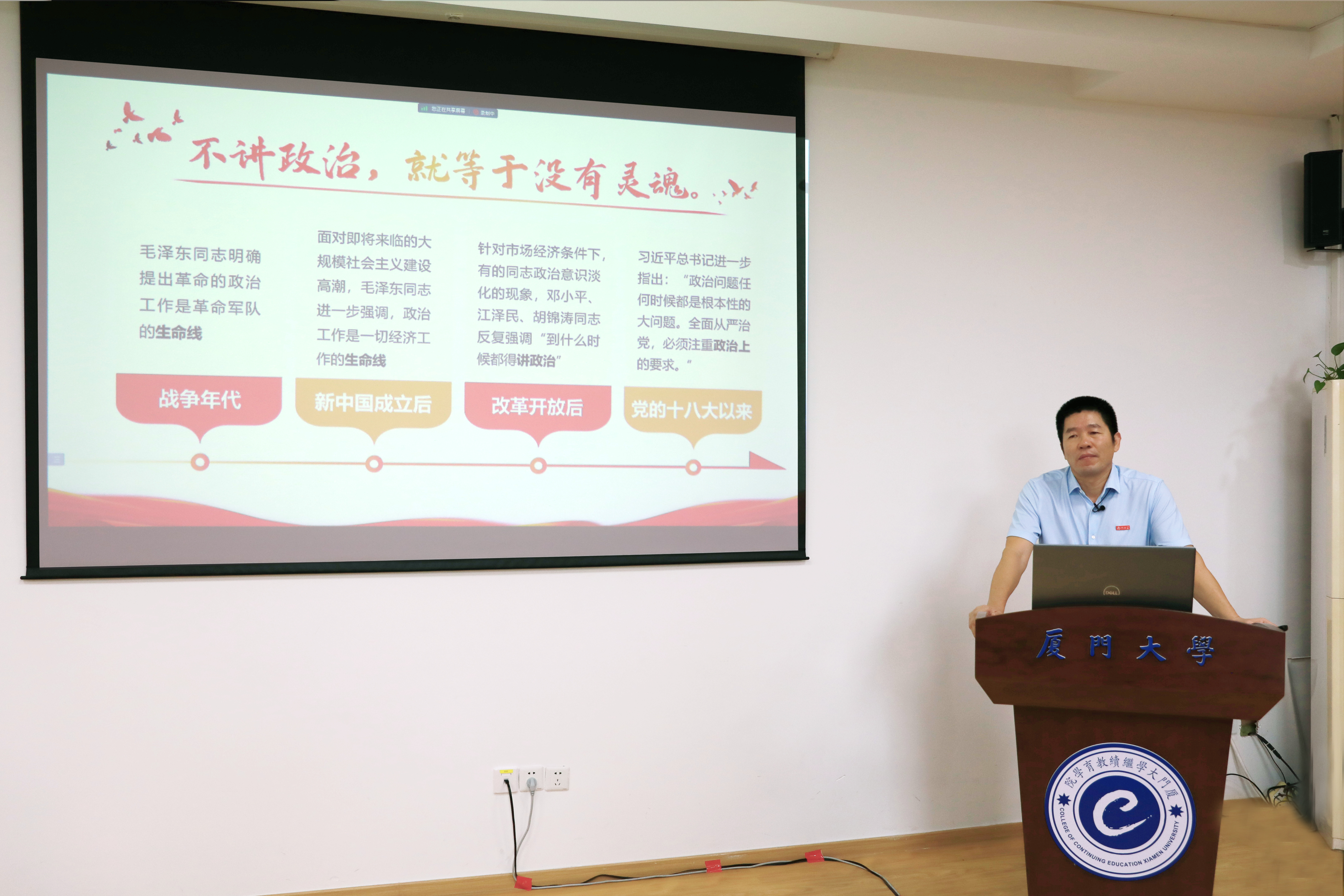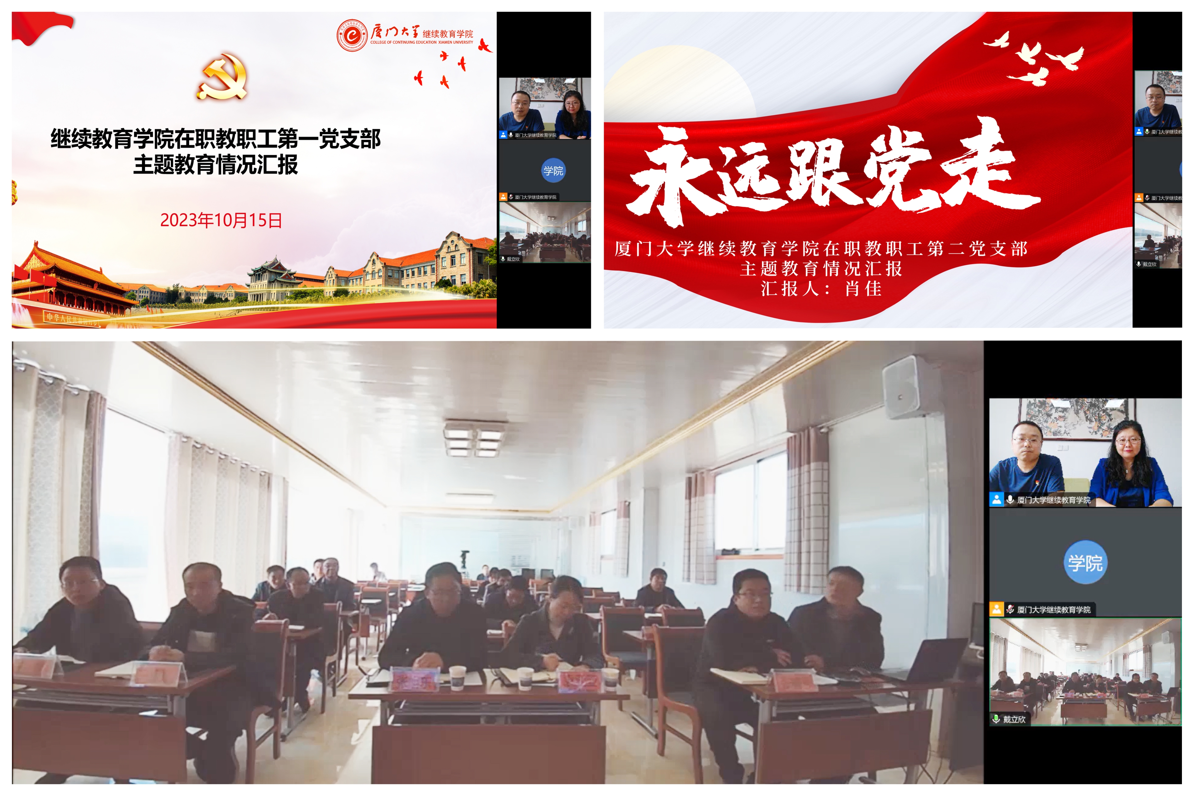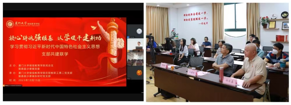 为深入学习贯彻习近平新时代中国特色社会主义思想,进一步强化“教育+乡村振兴”党建品牌创建,10月15日,由继续教育学院党总支、隆德县沙塘镇党委主办,继续教育学院在职教职工第二党支部、沙塘镇张树村党支部共同承办的“凝心铸魂强根基 以学促干建新功”共建联学活动暨村干部履职能力提升班以线上线下结合形式,在厦门、隆德两地顺利举行。本次联学活动由开班式、主题党课、经验交流等3个环节组成。校基层党建工作联络员郑建华、专职督导员郑庆喜,隆德县委常委、副县长陈国渊,隆德县沙塘镇党委书记张旭东,沙塘镇镇长袁亚亚,校派驻张树村驻村第一书记戴立欣,继续教育学院在职教职工第二党支部书记肖佳出席活动。
