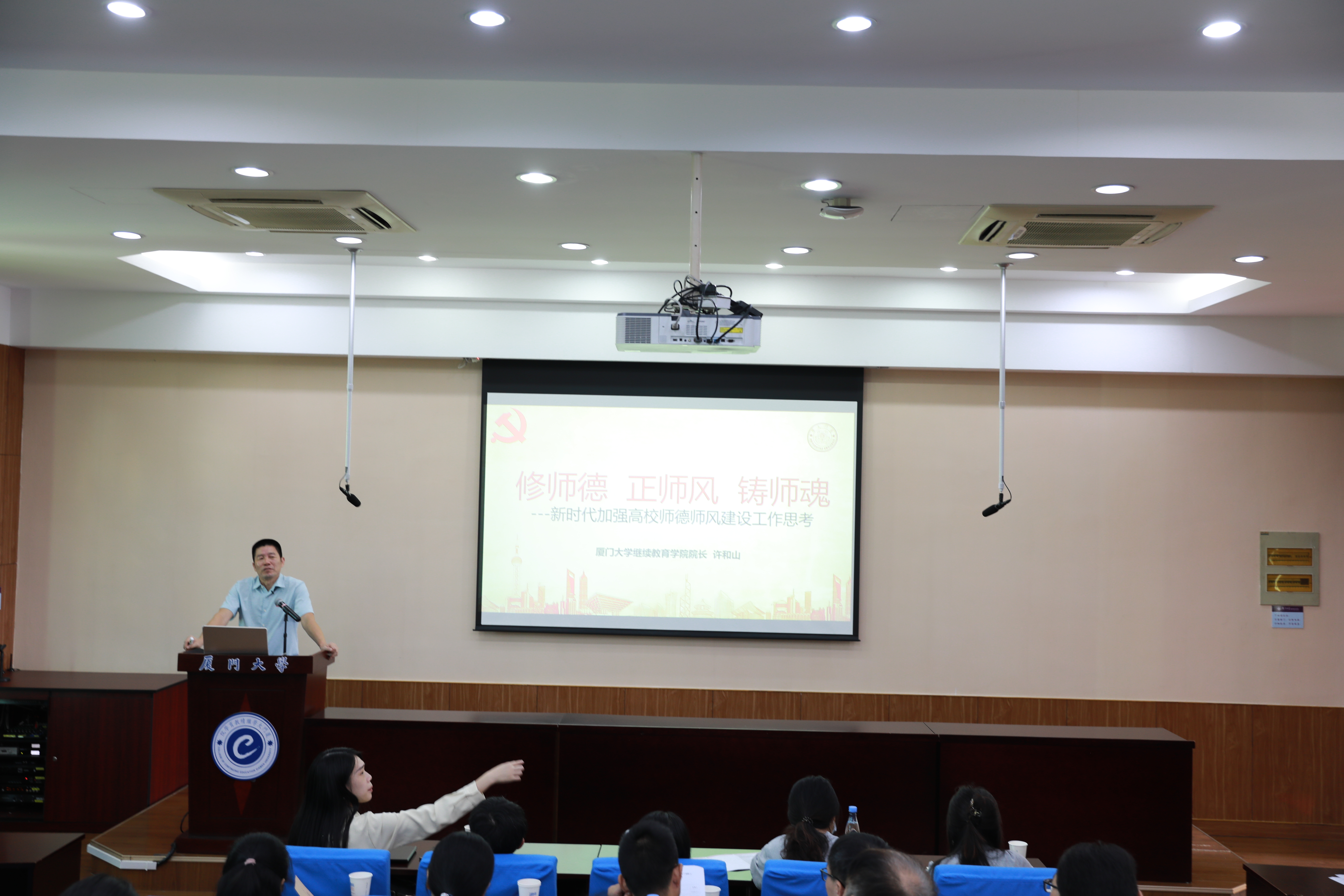 为深入学习贯彻习近平新时代中国特色社会主义思想和党的二十大精神,进一步弘扬高尚师德风范,涵养潜心立德树人的优良师风,9月28日,我院院长许和山在2023年下半年干部履职能力提升培训班上,为全院54名教职工讲授《修师德、铸师魂、正师风》专题课程。
