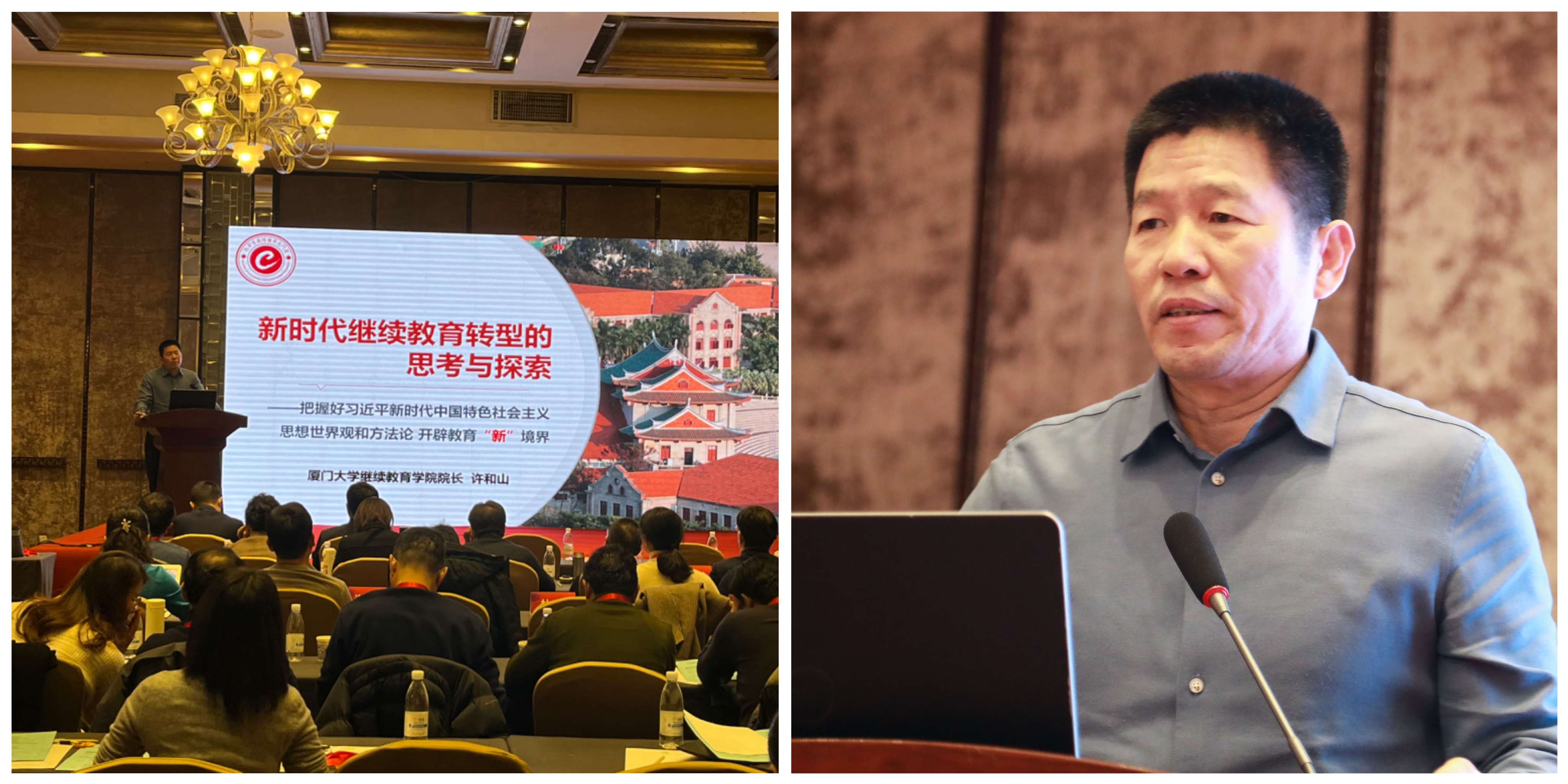 在建设教育强国这一时代背景下,为推动职业教育、高等教育、继续教育协同创新,促进继续教育高质量发展,他以“新时代继续教育转型的思考与探索 ——把握好习近平新时代中国特色社会主义思想世界观和方法论,开辟教育‘新’境界”作了主题报告。如何实施好继续教育领域办学综合改革,他强调,要以习近平新时代中国特色社会主义思想为指导,全面系统掌握这一思想的基本观点、科学体系,把握好这一思想的世界观、方法论,坚持好、运用好贯穿其中的立场观点方法,用“六个必须坚持”来分析、指导继续教育转型改革发展全过程,系统谋划,全面地、系统地、辩证地把握大势、分析问题,提升系统思维、战略思维、创新思维、辩证思维、法治思维、底线思维、历史思维能力。