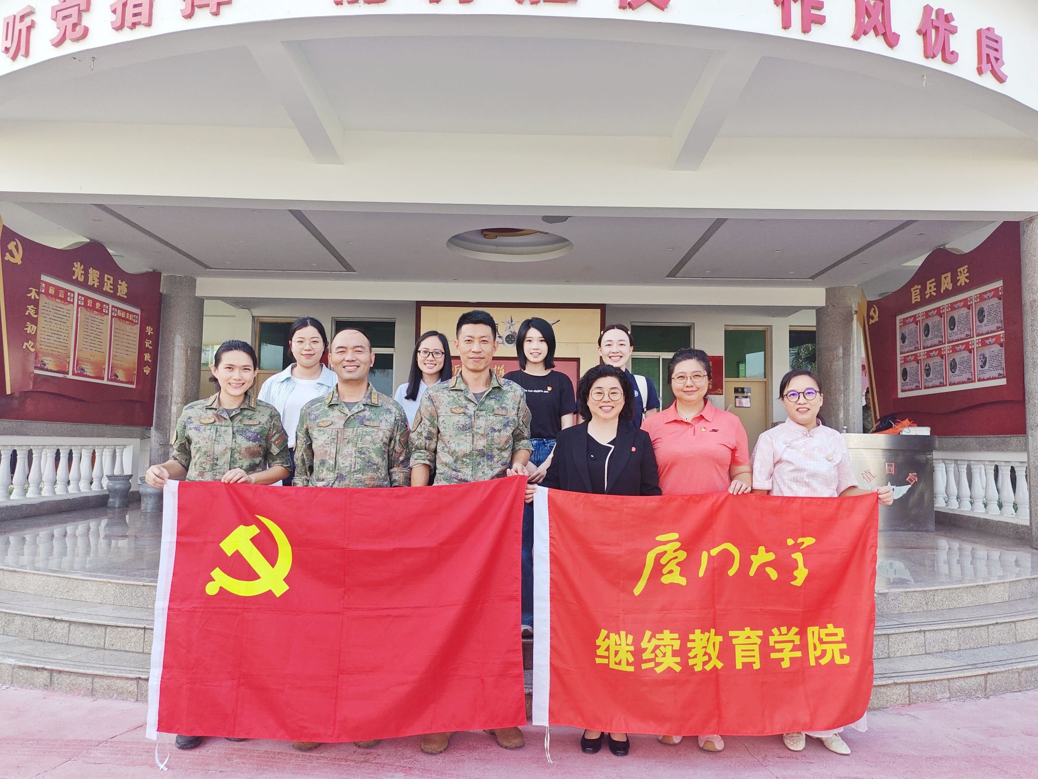 此次“八一”慰问暨“终身教育进军营”主题活动,是厦门大学继续教育学院深化双拥工作、推动军民融合发展的具体实践,更是在职教职工第一党支部坚持党建引领、推动党建与事业深度融合的生动体现。支部立足继续教育主责主业,充分发挥战斗堡垒作用,将智力拥军与服务官兵终身学习需求紧密结合,持续擦亮“智力强军”和“终身教育”党建品牌。活动不仅传递了学院对人民子弟兵的深情厚谊,更通过赠送终身教育学员卡这一创新形式,将拥军优属工作落到实处,架起了智力拥军的新桥梁,彰显了“智力强军”“终身教育”党建品牌赋能强军兴军的实践价值。