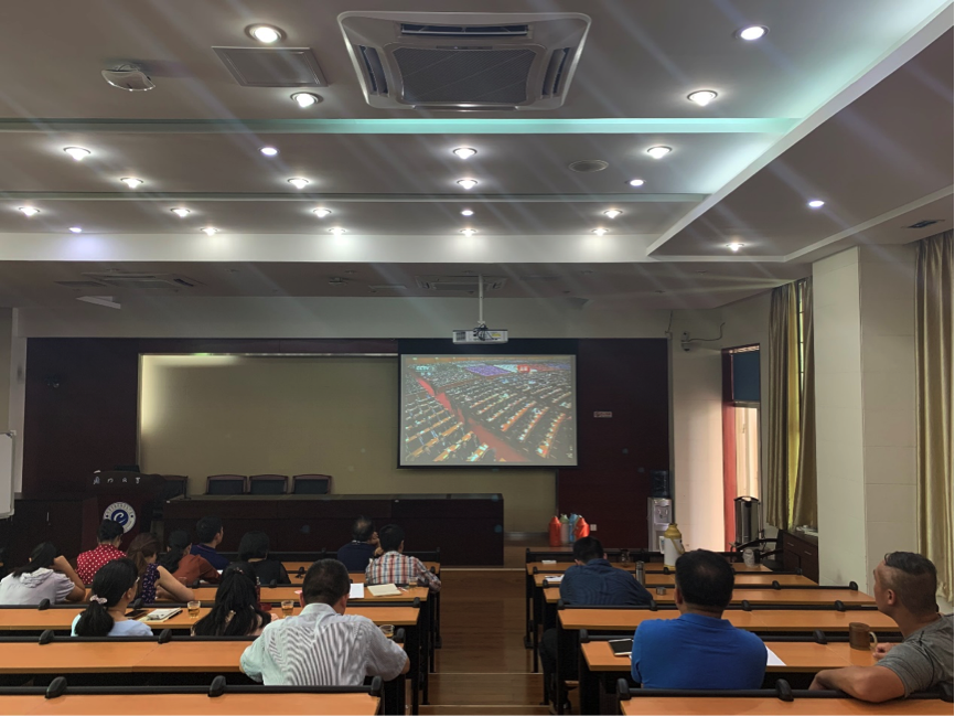 2019年4月30日上午10时30分,纪念五四运动100周年大会在人民大会堂举行,中共中央总书记、国家主席、中央军委主席习近平出席大会并发表重要讲话。发扬五四精神,深化爱国意识,学院党总支高度重视,组织安排全院教职工集中观看大会盛况。