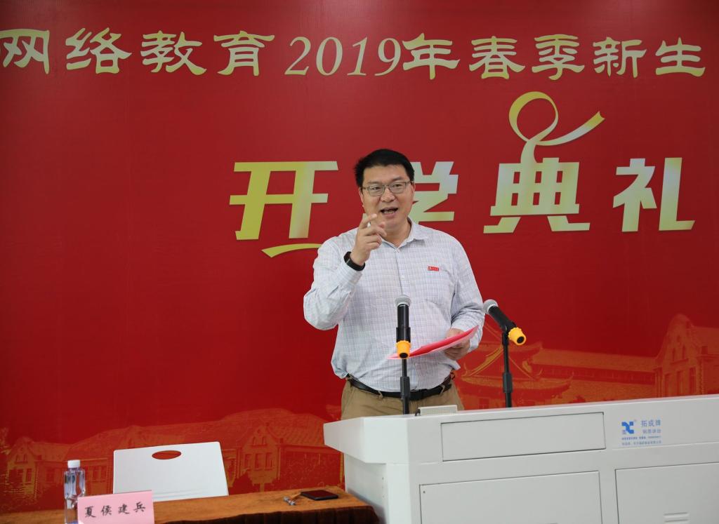 当高亢嘹亮的《义勇军进行曲》响起,佩戴着校徽的全体师生,一同起立奏唱雄壮激昂的中华人民共和国国歌,开学典礼在庄严神圣的气氛中拉开帷幕。夏侯建兵首先代表学院向厦门直属学习中心近五百名新同学的到来表示热烈的欢迎和衷心的祝贺。致辞中,他为大家深刻阐释了厦大“四种精神”的文化内涵和传承创新,以及学校追求卓越、争创一流的悠久历史和光荣传统,并传递了学院“规范管理,提升内涵”的继续教育办学理念。通过引经据典,谈古论今,勉励新同学们勿忘校史、不忘初心,在博大精深的厦大文化中形成感恩、开放、创新、和谐的文化品格,不负韶光,追求新知。