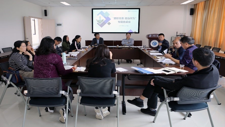 就在这样的境况下,学院领导班子站稳立场、沉着应对、厉兵秣马、攻坚克难。一方面,坚持好党政联席会议制度,在每周一次的会议中及时将学院当下工作中的重点和难点抽丝剥茧,寻找突破口,并在维持我院战略发展目标不动摇的情况下不断调整发展节奏,优化问题的解决方案。另一方面,夏侯建兵院长、邱旺土书记深入各部门开展调研,组织学院骨干召开“履职尽责 担当作为”专题务虚会,集中全院力量,认清发展形势,加强沟通交流,寻求解决出路,达成发展共识。