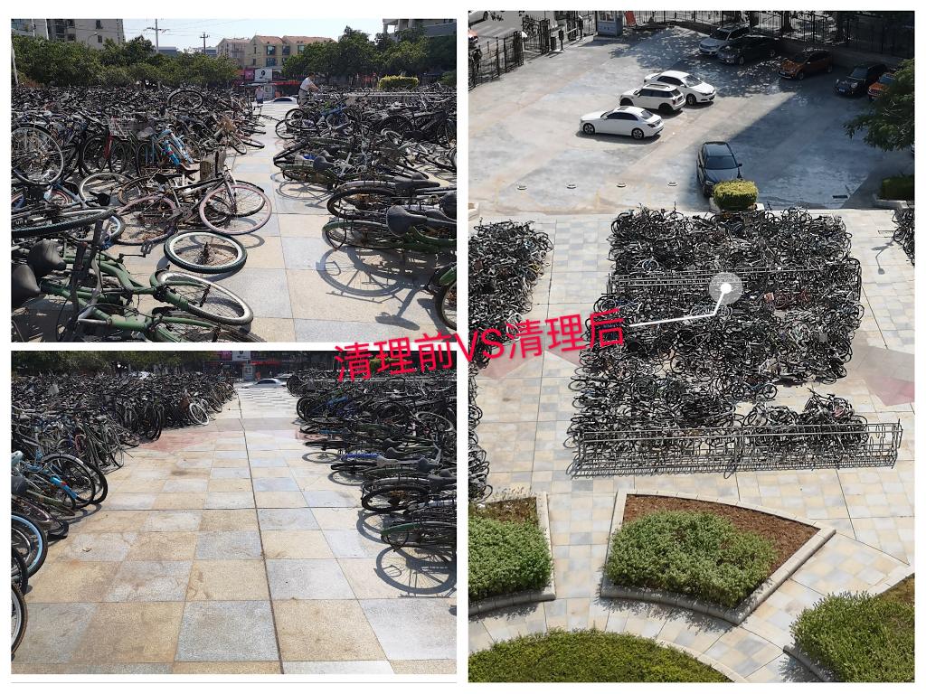 曾厝垵学生公寓教学楼是学校主要的教学场所之一,楼前广场除了是进出校园的主要通道,也是学校师生的课间休息休闲场所。长期以来,楼前广场堆放了大量的废弃自行车,加上环境卫生长期无人管理,呈现出脏乱差的形象。除了影响学校师生的出行,也严重损害了厦大美丽校园形象。因此,在繁忙的工作之余,党员老师利用11月5日午休时间,将楼前广场进行了整理和清理。烈日下,大家齐心协力将一辆辆废旧自行车整理摆齐,将堆积已久的废旧垃圾逐一清扫,把原本已经堵塞的步行通道逐步打通,终于清理出两条较为宽敞的步行通道,为师生营造了干净、整洁的学习环境。大家虽挥汗如雨,却毫无怨言,体现了党员的先锋模范作用,以实际行动践行了初心和使命。