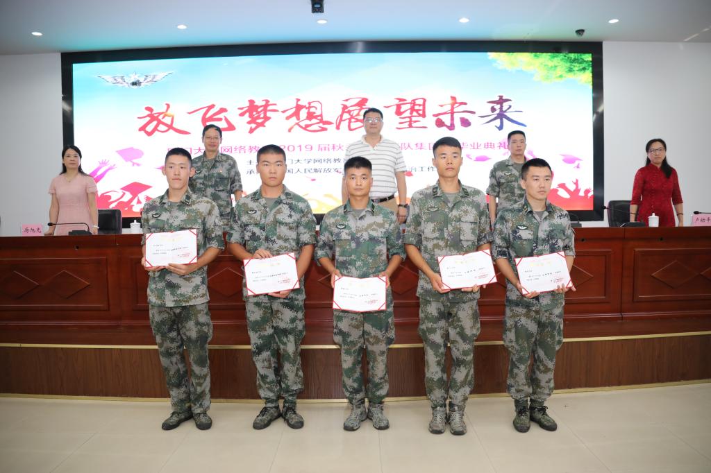 典礼第二项议程为表彰优秀学员。厦门直属学习中心主任厉旭光首先宣读《关于表彰厦门大学网络教育厦门部队集团班2017-2018年度和2018-2019年度优秀学生干部和优秀学生的决定》和《关于准予厦门大学网络教育厦门部队集团班201906批次50位学生毕业的决定》。夏侯建兵院长和部队领导为受表彰学员颁发荣誉证书。
