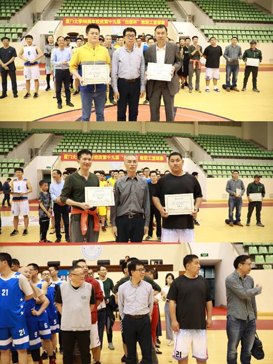 厦门大学明培体育馆场内气氛火热,这是继续教育学院教职工篮球队在本届厦门大学“出版杯”教职工男子篮球赛中最后一场球赛的比赛现场,在历时近一个月的激烈赛程中,我院以夏侯建兵院长、黄明伟副院长领军组成的继续教育学院教职工篮球队伍始终斗志昂扬,在一次次比赛中奋勇拼搏、最终取得了第五名的好成绩。
