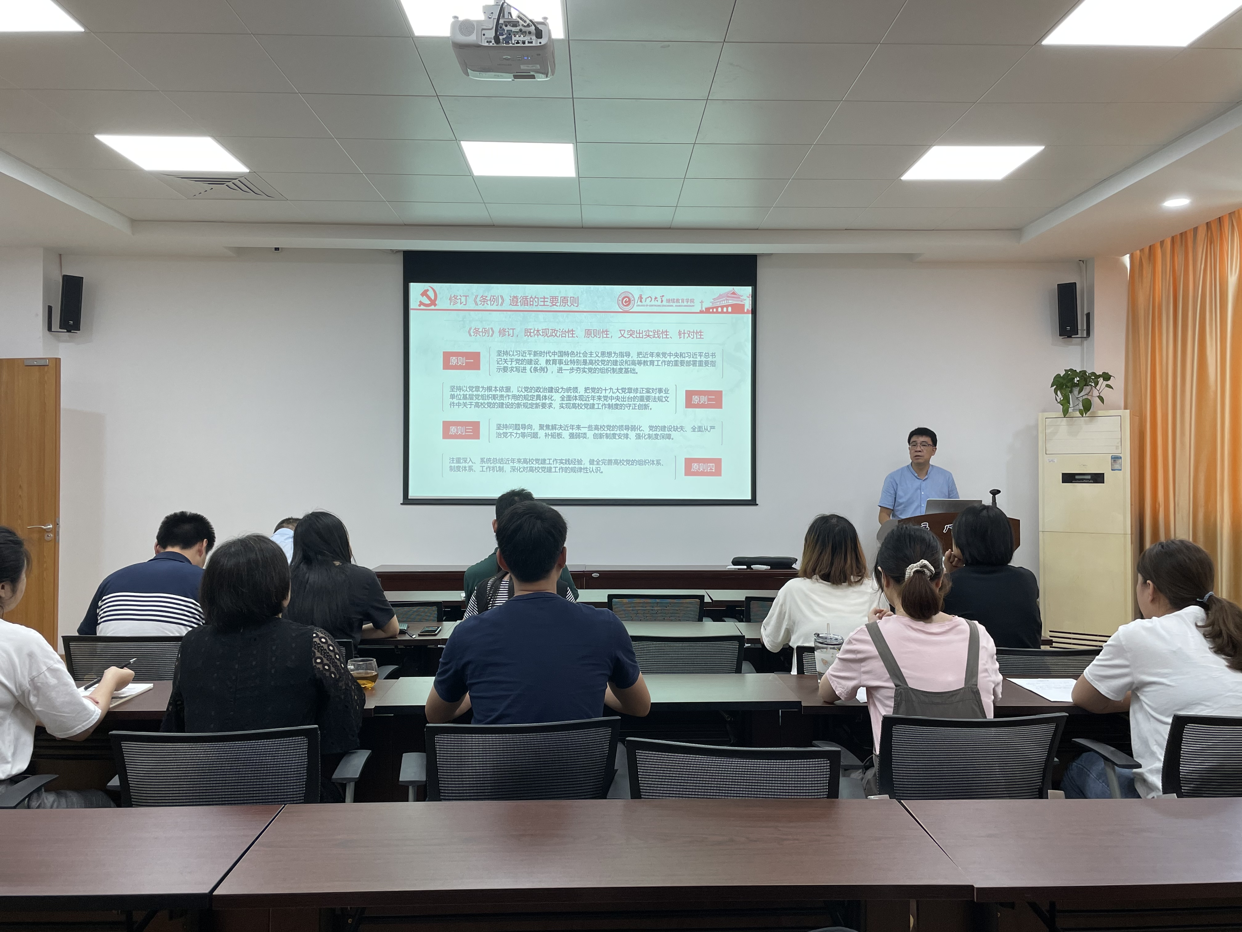 学院党总支及时召开支部书记工作例会,安排部署《条例》宣传教育工作,并在会后组织全体支部书记、支部委员召开学院党支部书记、支部委员专题学习班,将学习《条例》作为推动工作、指导实践的重要指南,结合学院实际,逐章逐条作重点研读,起到深化思想,凝聚共识的作用。