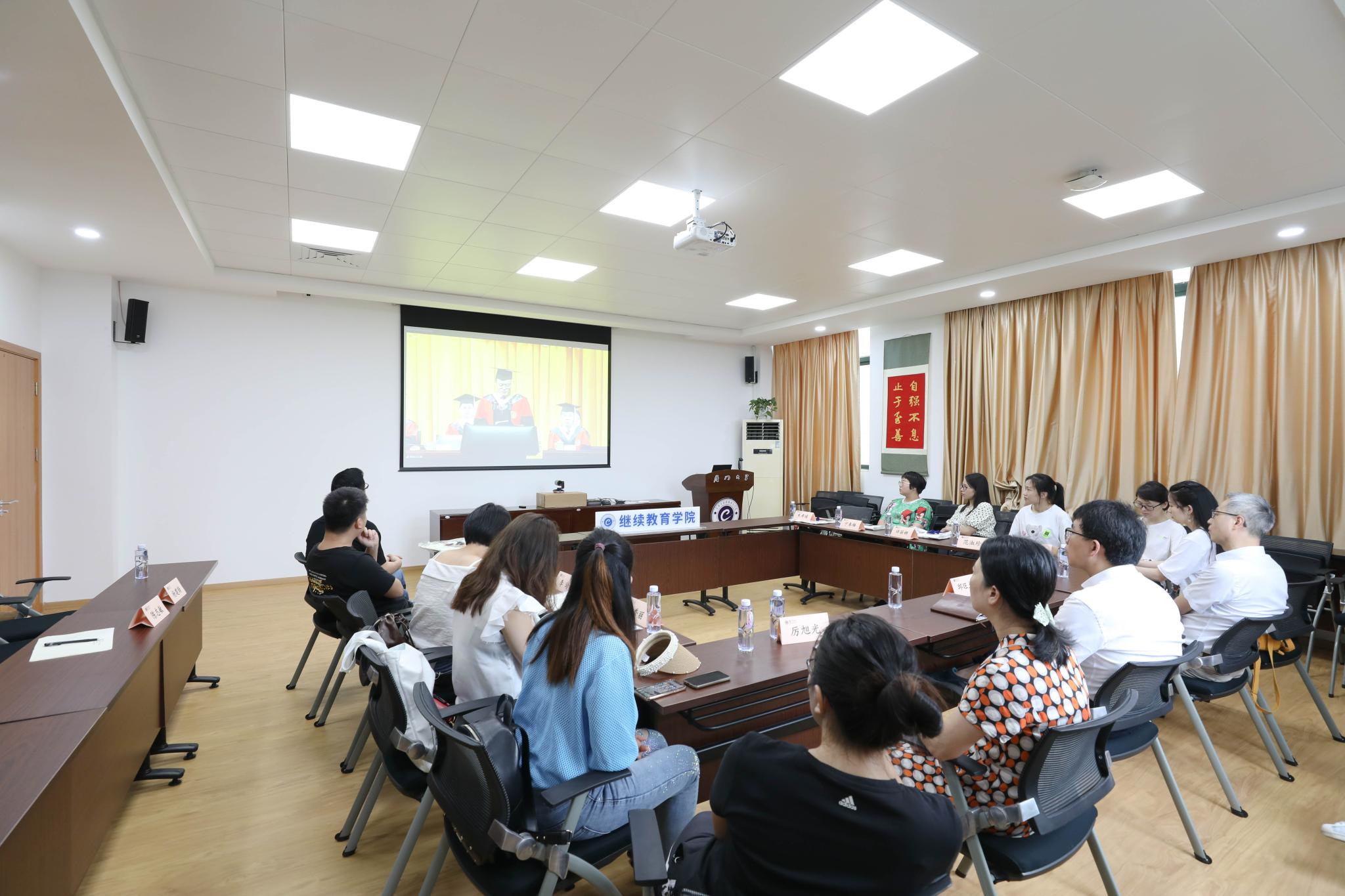 2021年6月26日上午,学院党总支书记邱旺土、学历教育中心主任李金水、学工部及厦门直属学习中心有关老师,我院15位网络教育毕业生代表,在学院306会议室,观看厦门大学2021届毕业典礼直播。