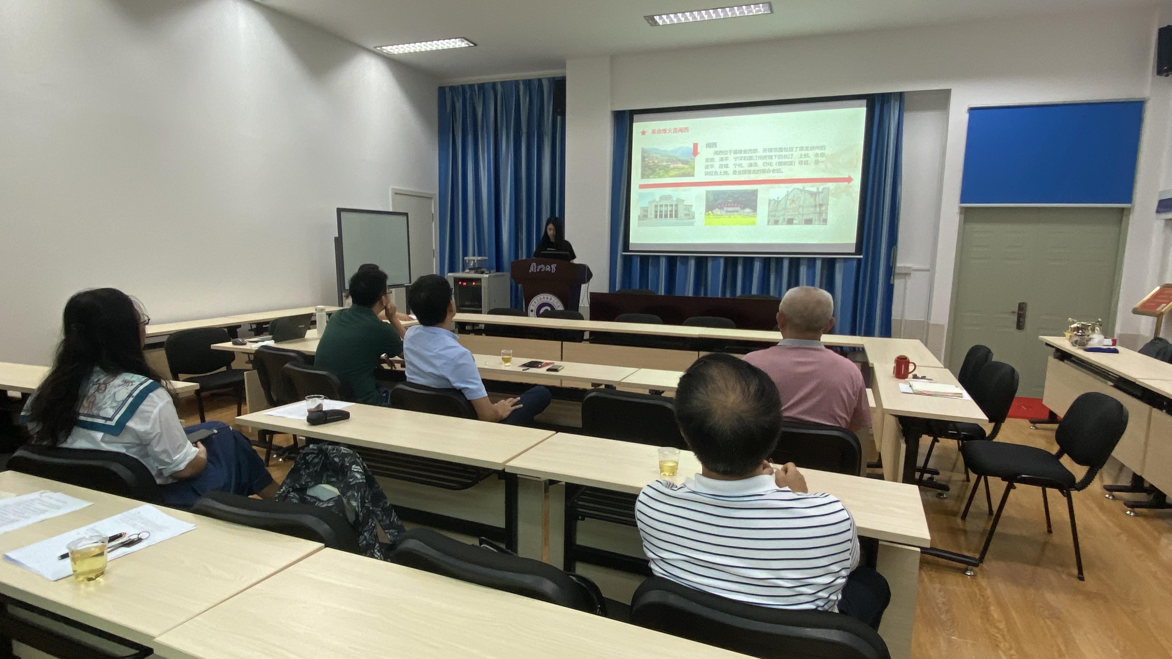 7月22日晚上,继续教育学院第六期“讲党课 学党史”党课活动在厦大海韵学生公寓教学楼102报告厅召开。在职教职工第二党支部书记孙锦水、学校2021年优秀共产党员李舟洁作为党课主讲人,分别为在职教职工第二党支部全体党员讲授“重温党史明初心 砥砺奋进担使命”和“闽西儿女的革命初心”专题党课。