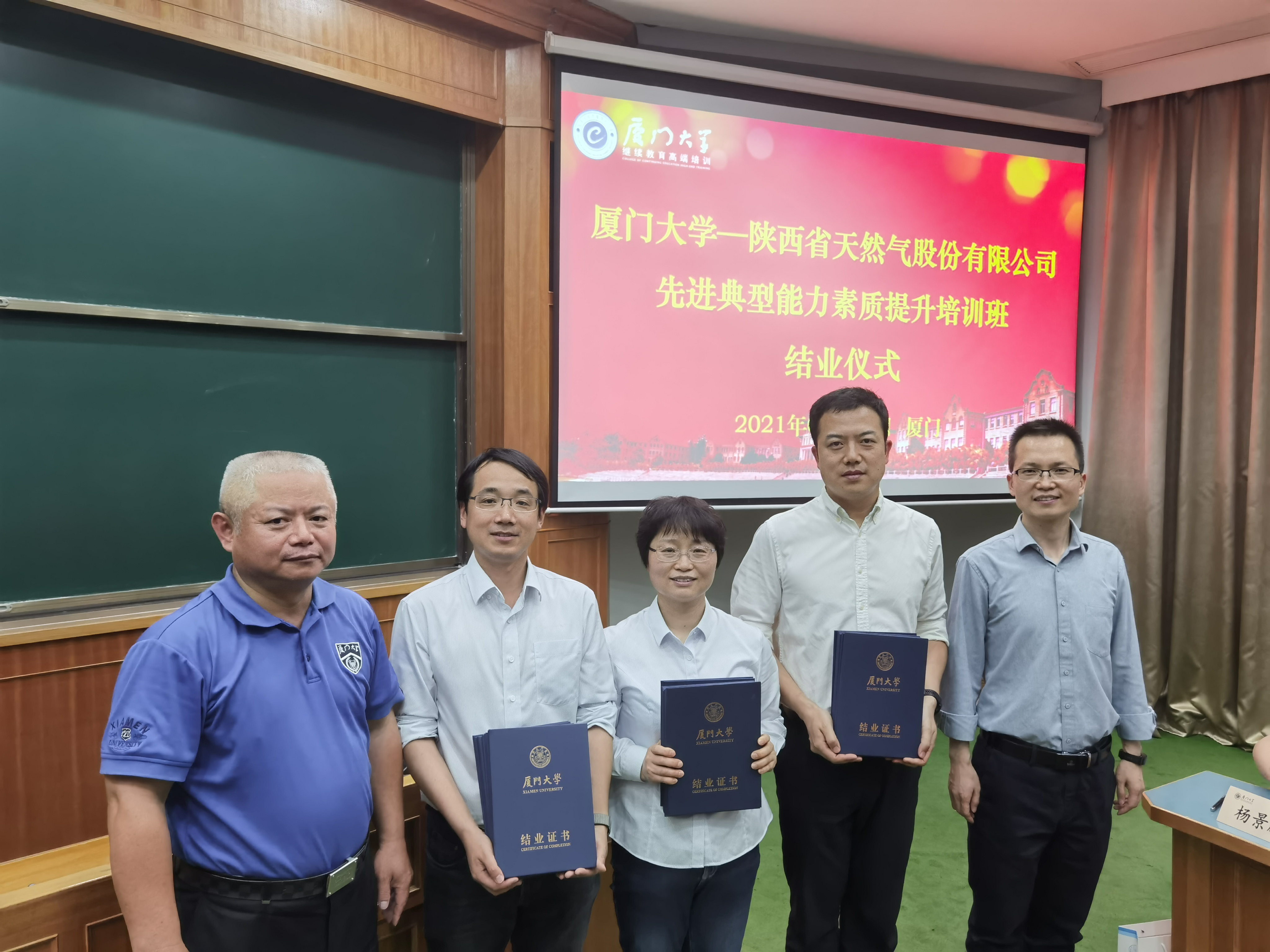 结业仪式上,陕西省天然气股份有限公司副总经理高京卫向厦门大学继续教育学院对培训工作的支持表示衷心感谢!对三位学员代表的发言给予赞赏与肯定,并以陈嘉庚先生“在校尽学生之职务,出校尽国民之职务”这种以国家、民族为重的品格,自强不息的精神向即将结业的学员们提出期望,指出学习是终身的事业,永远没有结业,本次培训只是暂告一阶段,公司党委将继续按照“干什么学什么、缺什么补什么”原则,不断培育“人人都是老师,事事都是教材,处处都是课堂”的学育机制。继续教育学院郑庆喜副院长出席了结业式,并向结业的学员们表示祝贺,再次强调厦大学子的自强精神,寄语学员们学有所获,研有所得,将所吸收的新知识新理念反哺于工作中。