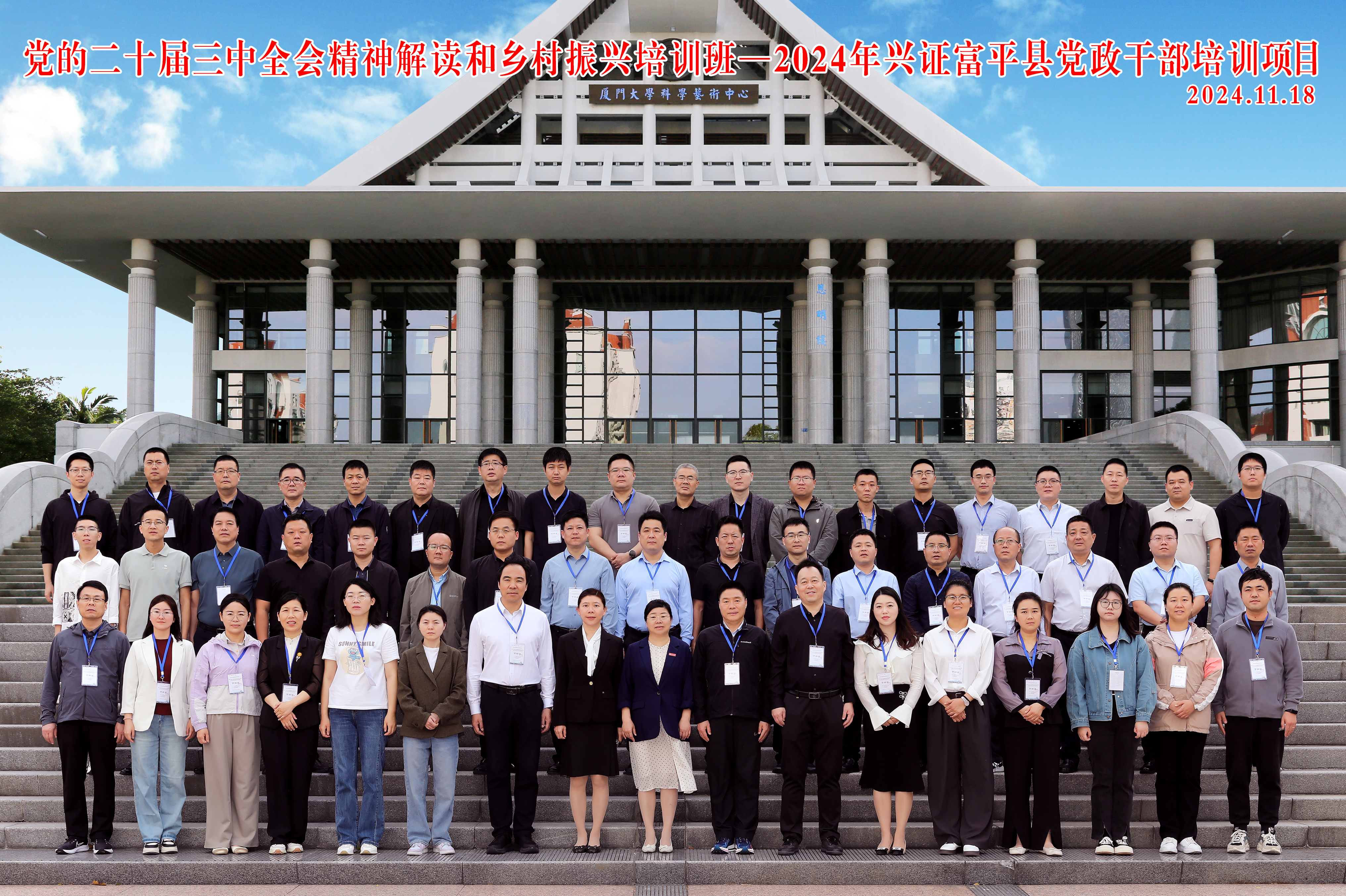 11月17日至21日,党的二十届三中全会精神解读和乡村振兴培训班—2024年兴证富平县党政干部培训项目在厦门大学成功举办。本次培训班由富平县委组织部、兴业证券、兴业证券慈善基金会主办,中国乡村发展基金会、厦门大学继续教育学院承办。