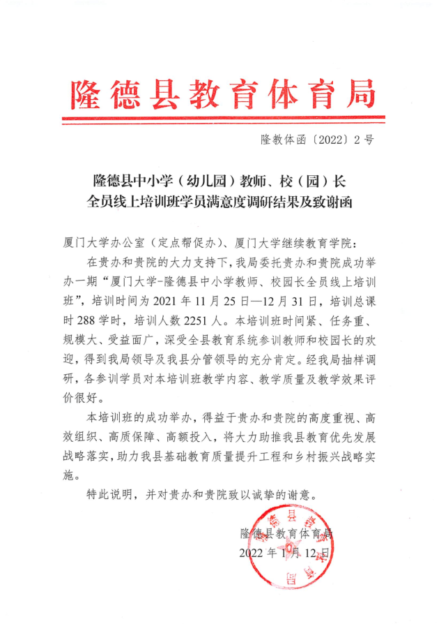 ● 隆德县中小学(幼儿园)教师、校(园)长全员线上培训班致谢函(https://nec.xmu.edu.cn/info/1418/10233.htm)