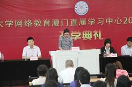 10月19日上午,厦门大学网络教育厦门直属学习中心2014秋网络教育新生开学典礼在学院隆重举行。学院副院长杨鸿飞、党总支副书记郑碧娇,授课教师代表金融系赵正堂副教授,厦门直属学习中心主任肖佳、副主任李杰及相关工作人员参加了典礼。典礼由肖佳主持。