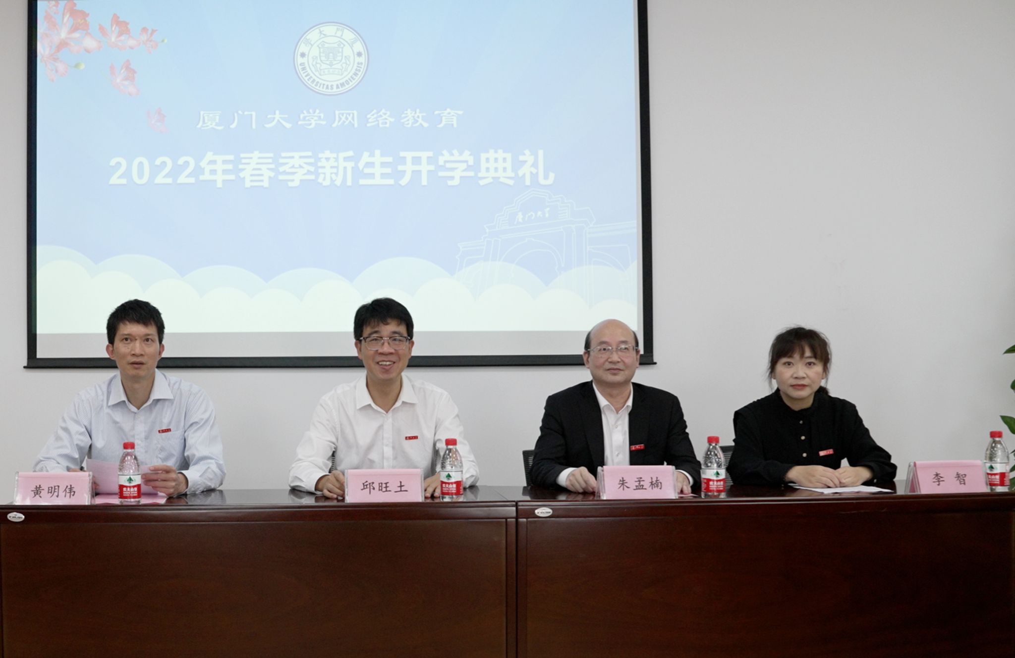 2022年4月23日上午,厦门大学继续教育学院网络教育2022年春季新生“云”开学典礼在学院306报告厅隆重举行。继续教育学院党总支书记邱旺土、院长朱孟楠、党总支副书记黄明伟,授课教师代表经济学院副教授李智出席了典礼。典礼由黄明伟主持,校外学习中心的老师和2022年春季新生齐聚“云”端,通过直播形式观看开学典礼。