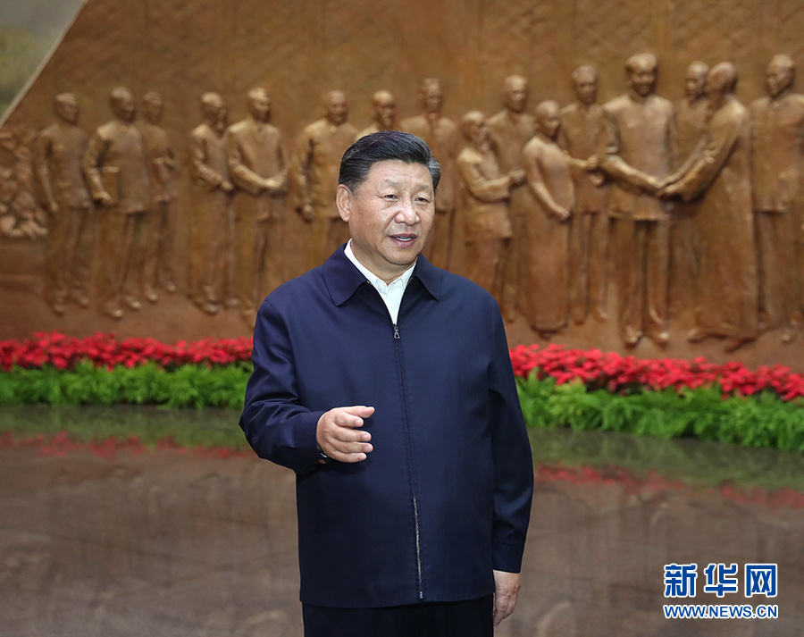 参观结束时,习近平在纪念馆序厅发表了重要讲话。他表示,1949年3月23日,中共中央和毛泽东同志离开西柏坡前往北平,25日进驻北京香山,这里成为党中央所在地。在这里,毛泽东、朱德同志发布向全国进军的命令,吹响了“打过长江去,解放全中国”的伟大号角,中国人民解放军以摧枯拉朽之势向全国各地胜利大进军,彻底结束了国民党在大陆的统治。在这里,毛泽东同志发表了《论人民民主专政》,为新中国的建立奠定理论基础和政策基础。在这里,中共中央同各民主党派、各界人士共同筹备中国人民政治协商会议,制定通过了起到临时宪法作用的《中国人民政治协商会议共同纲领》,确定了新中国的国体和政体,制定了一系列基本政策,描绘了建立建设新中国的宏伟蓝图。