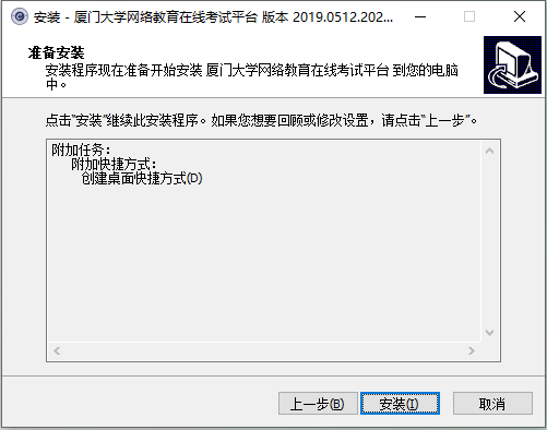 (5)如图2-4进入“选择附加任务”页,勾选“创建桌面快捷方式(D)”后,点击“下一步”开始准备安装。