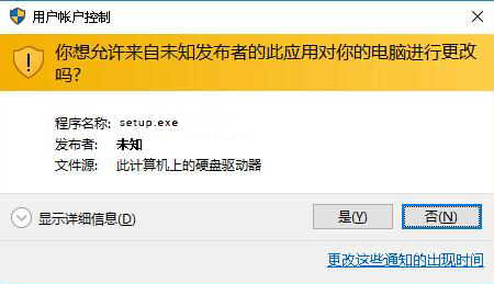 (3)启动安装后,如出现图2-2类似的“用户账户控制”窗口,请点击“是”并继续。